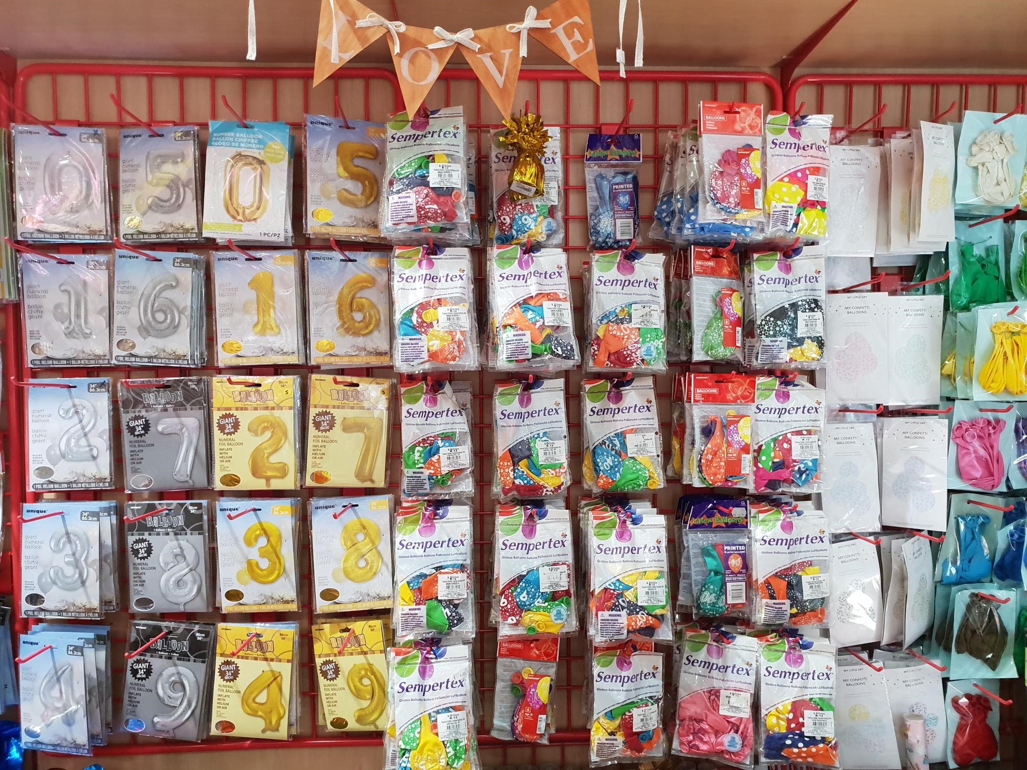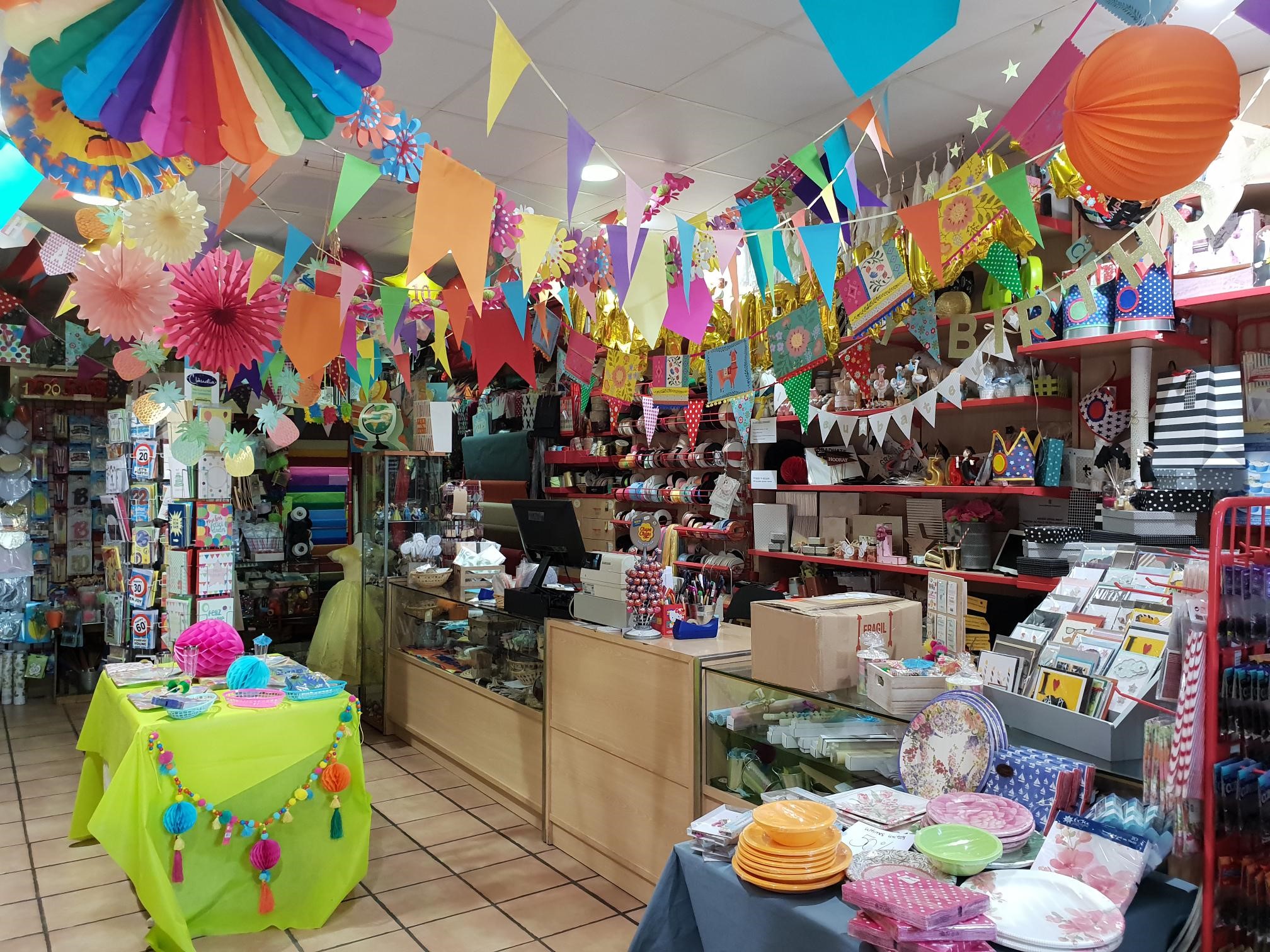 Articles de decoració com banderins, globus, guirnaldes, ...